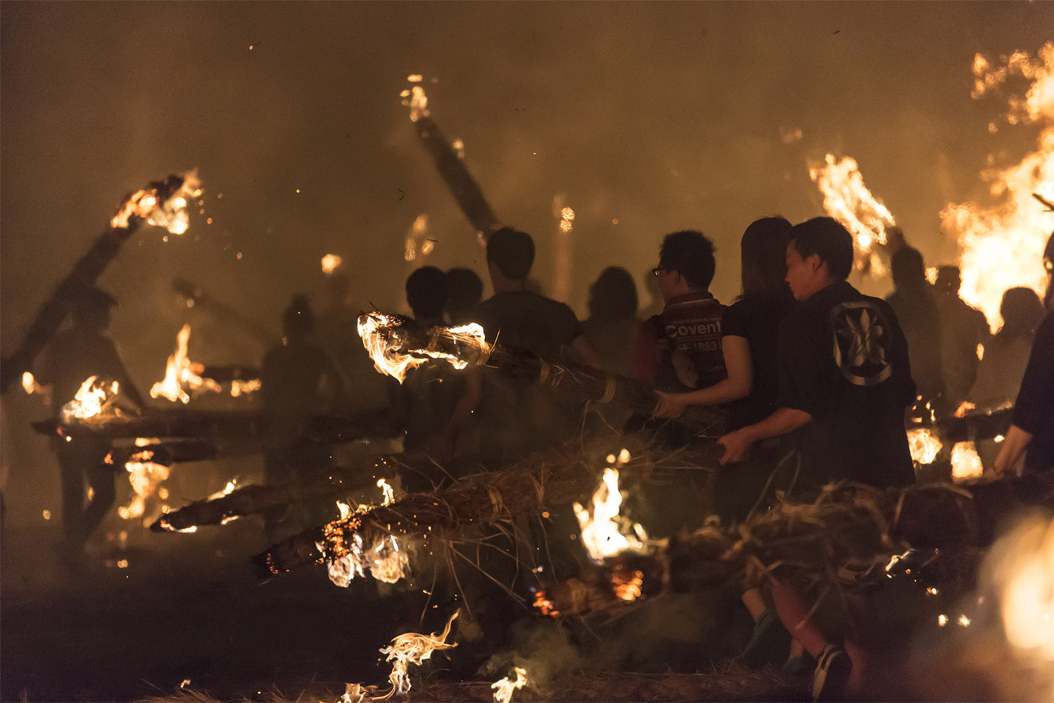 毎年7月の最終土曜日に行われる向田火祭。高さ30メートル級の特大松明が燃え盛る迫力が凄まじい。松明の前にキリコもでるので先にキリコの撮影も楽しめます。参加自由で松明を持って巨大松明の周りをグルリと回る儀式にも参加でき参加者を撮るのも面白いです。炎は明るいので撮りやすく初心者でも撮影できると思います。人混みも多いので場所にもよりますが広角や標準が撮りやすいと思います。いい場所を抑えようと思うなら早めに行って確保がおすすめです。
