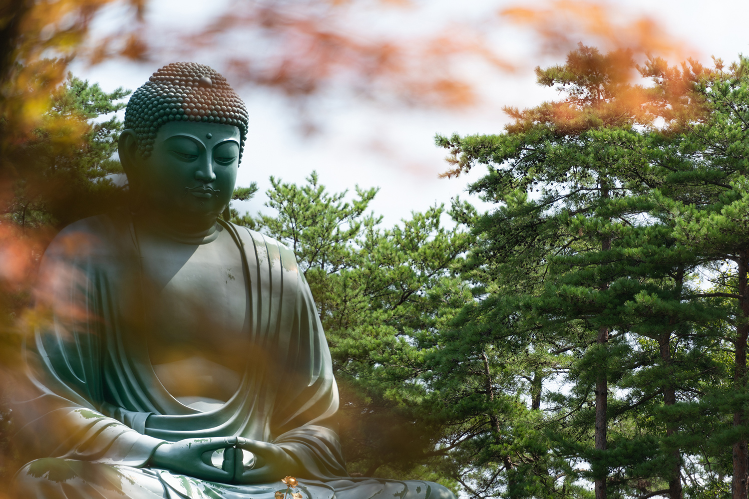 能登穴水にそれは大きな大仏様がありました!2003年に安置されたようでまだ歴史は浅いですが自然の中にとても大きな大仏様がある様子は面白く撮りがいがあります!夏に行っても紅葉が赤く秋の雰囲気も感じる写真が撮れそうですよ。近くにマルガジェラートもあるのでついでにジェラートも楽しめます♩