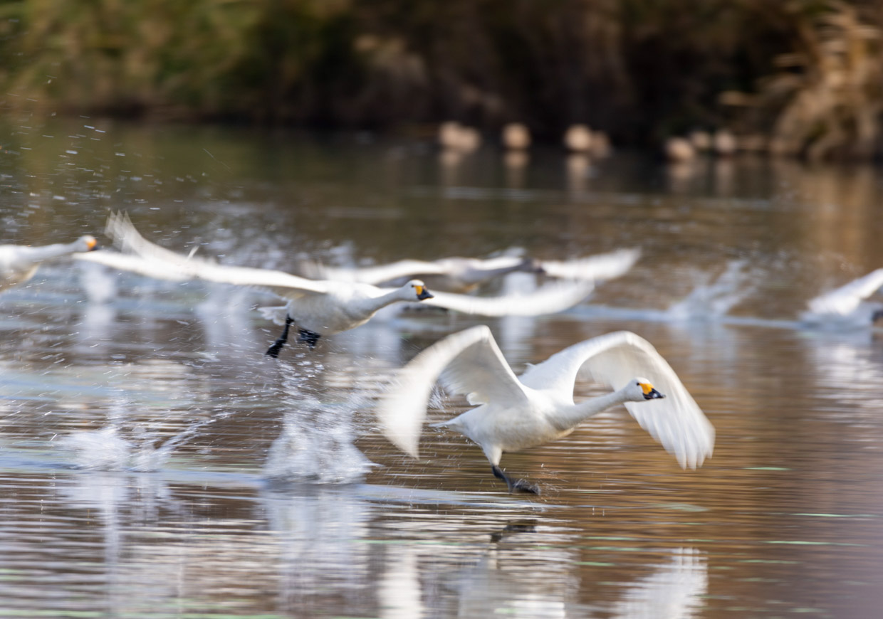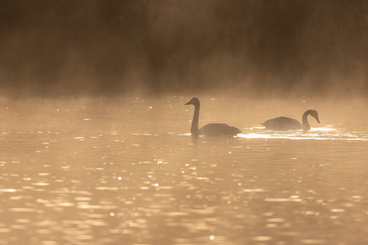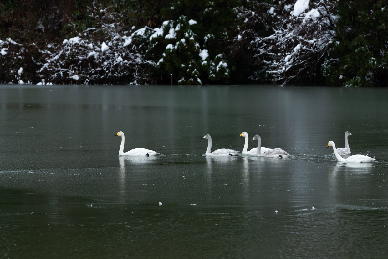 地元に白鳥が飛来していたので、早朝に撮影に行ってきました。朝靄の時間帯もあり、とても幻想的な時間でした!氷上の白鳥は別の場所ですが、氷と雪と白鳥で冬が感じられる写真となったと思います。